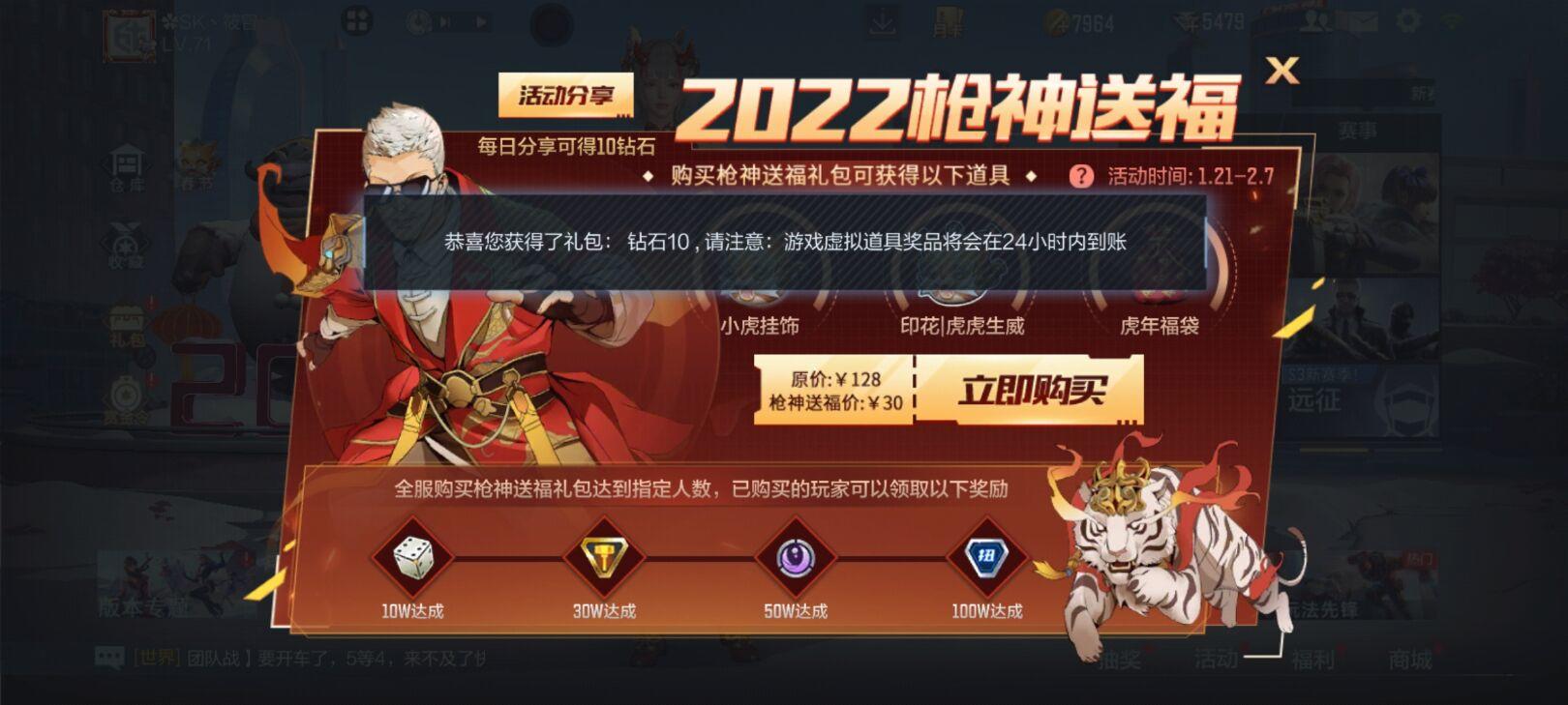 虎年枪神送福,限定道具等你来拿