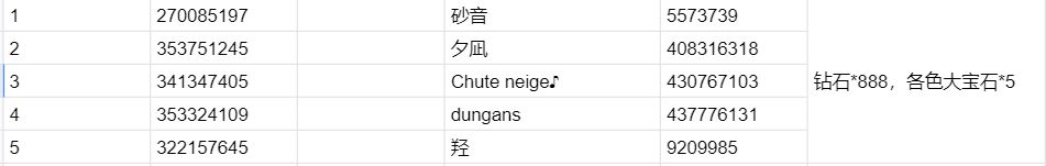 随机抽选5名制作人送出:钻石*888,各色大宝石*5