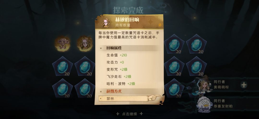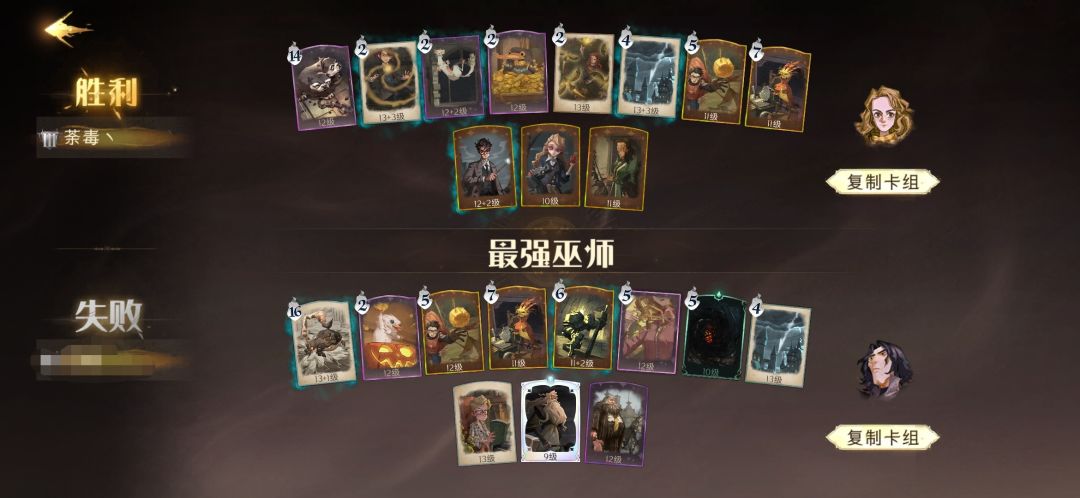因为刚打到的回响强化结果没核心咒语,我就突发奇想来了个小闪电赫敏,强度暂时未知,但是非常欢乐,对面一直被乌云追着,强行消耗移动卡,目前只打了一个常规纳威,海格龙蛋,如图的当前啥都能带石墩斯内普,都是几乎满血结束战斗。