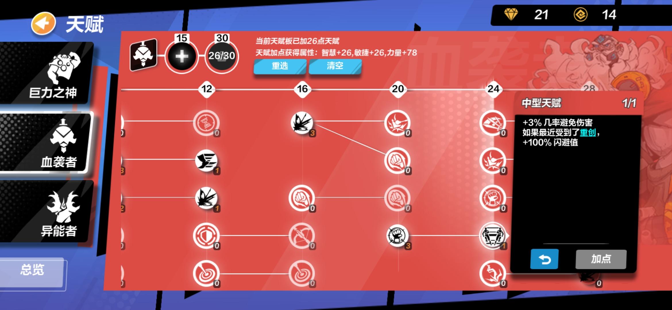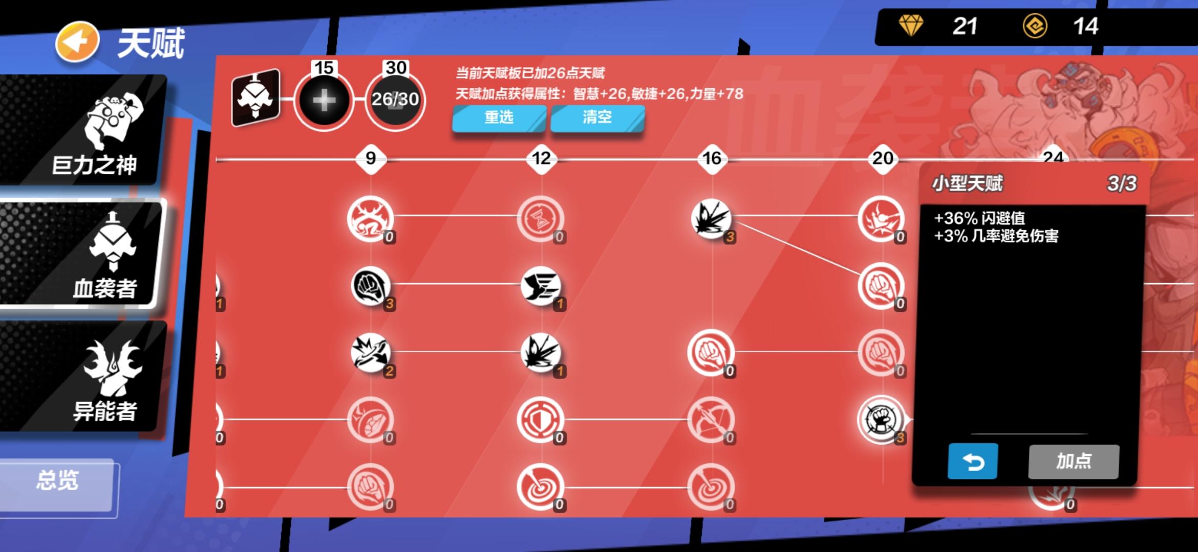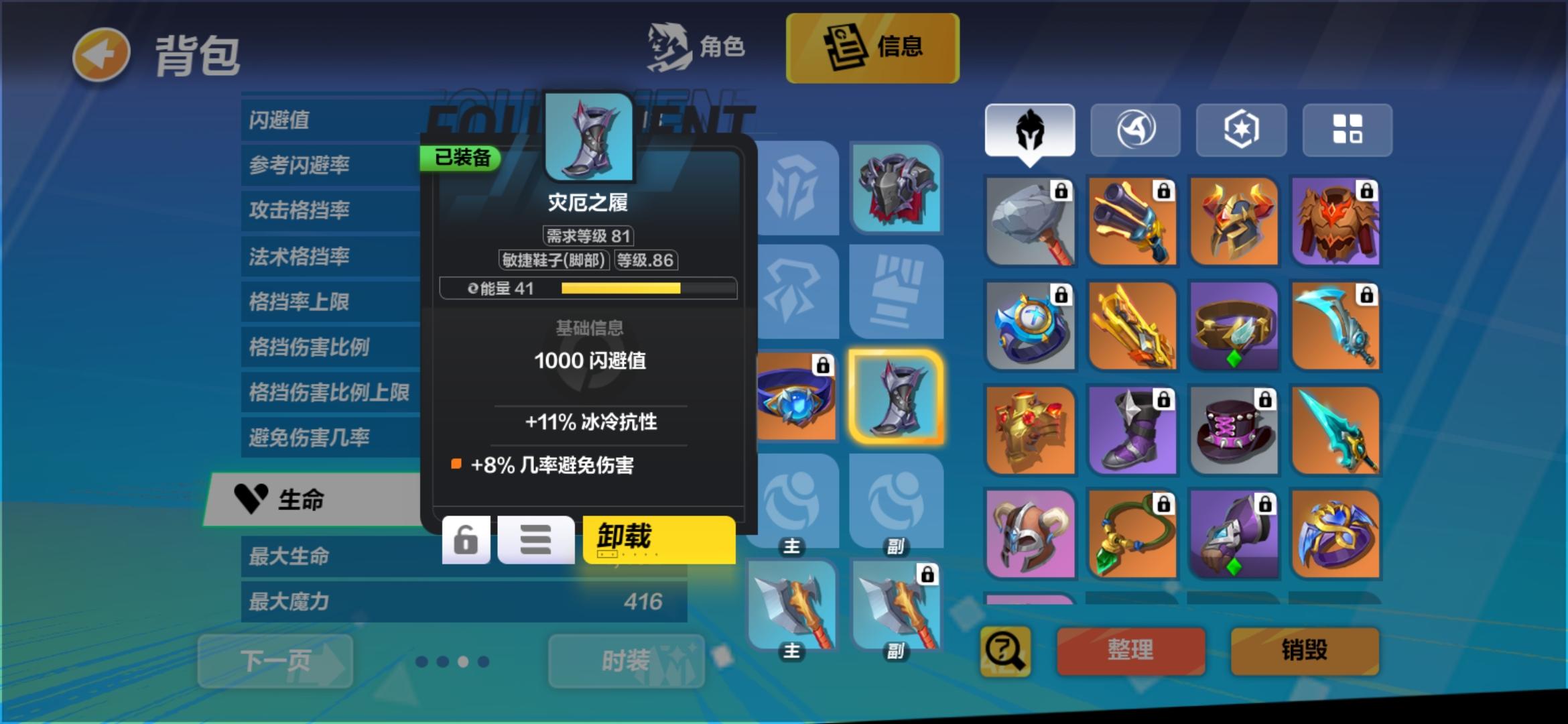 剩下就很简单了,狂人天赋低血15几率避免伤害,衣服12,鞋子10,两把单手斧20。血袭者那还有6点几率避免伤害。我武器衣服随便洗洗的,都没满,所以靠宠物拿了一点。