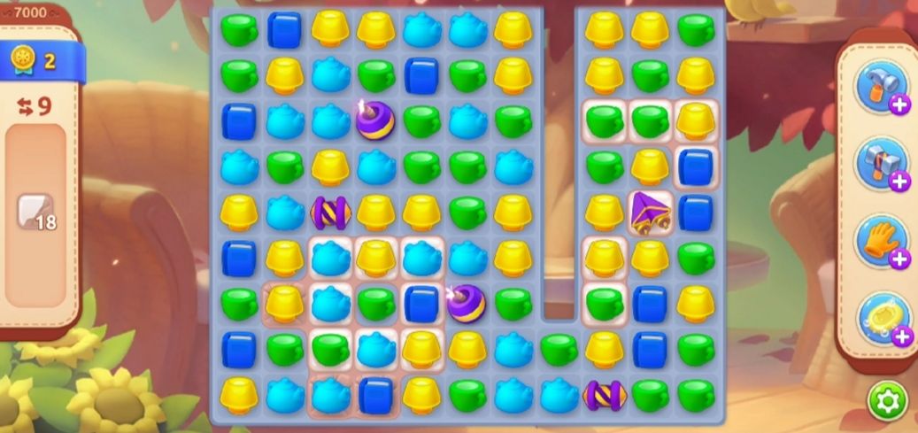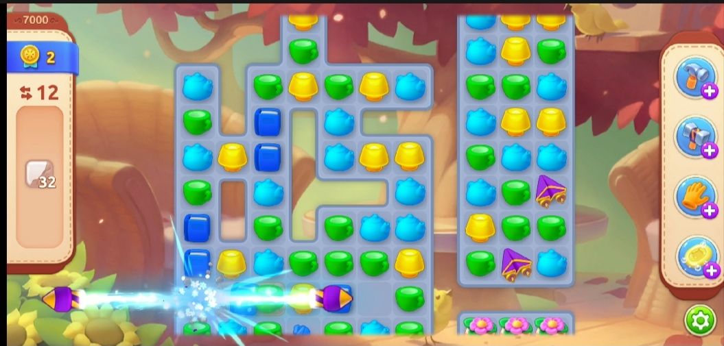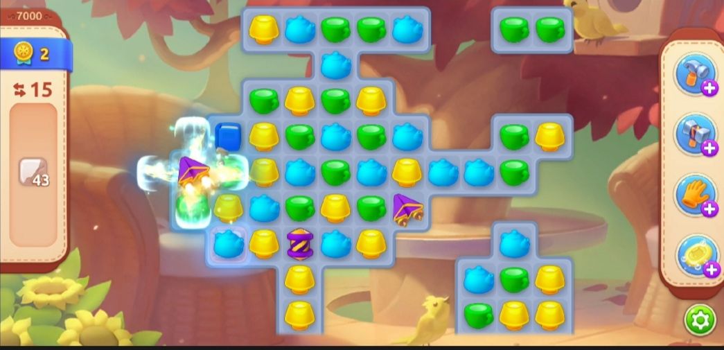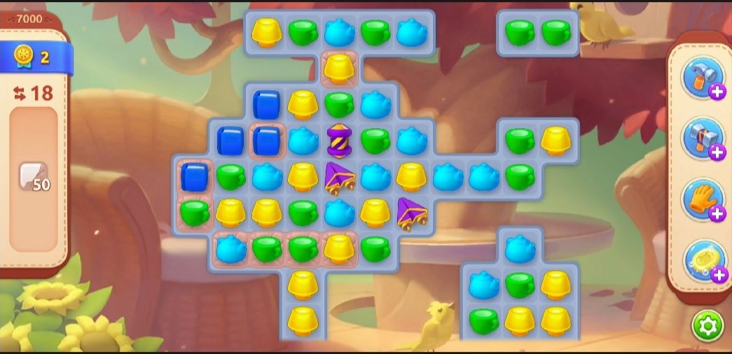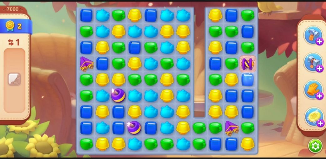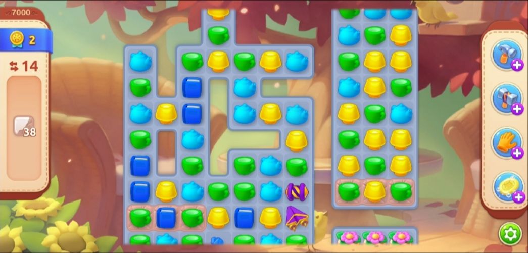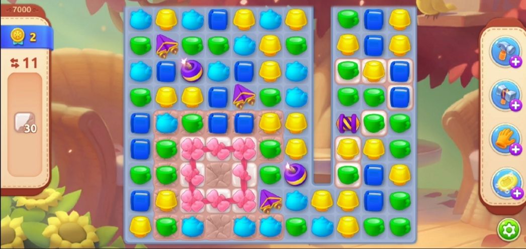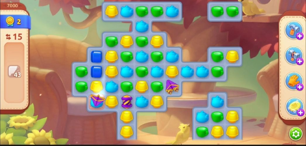 还是同场景一,一样的方砖消除方法,可以利用图块的移动匹配,或是加速道具的使用消除方砖,完成场景二的消除任务。