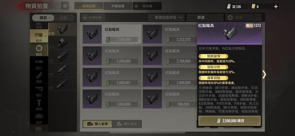 首先瞄具除了红点以及全息以外,还分为2、4、8倍镜,原则上狙击枪类自然是适合高倍镜,而冲锋枪、机枪则可以使用红点/全息,步枪则适合使用低倍镜,算是我比较常用的搭配方式,主要是根据各枪械的交战距离而定。