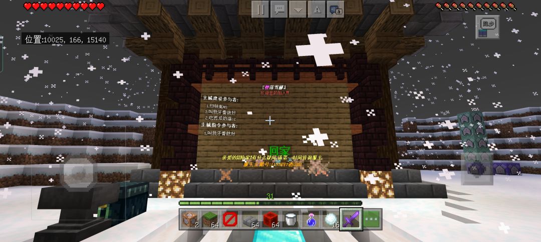 欢迎各位红石建筑养老玩家前来入驻,服务器近期开放了生存2区,方便新来的玩家前期收集资源。主城有雪球回城,每日签到,服务器会一直开下去的,各位放心玩耍。