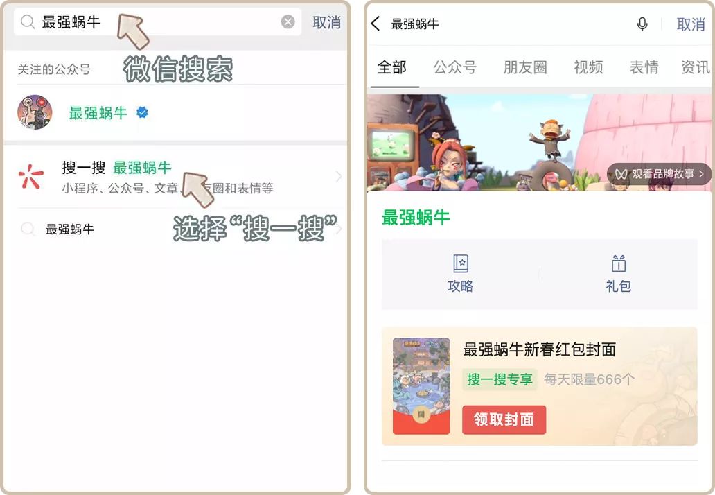 在微信搜索“最强蜗牛”,点击“搜一搜”,进入页面即可抢封面!