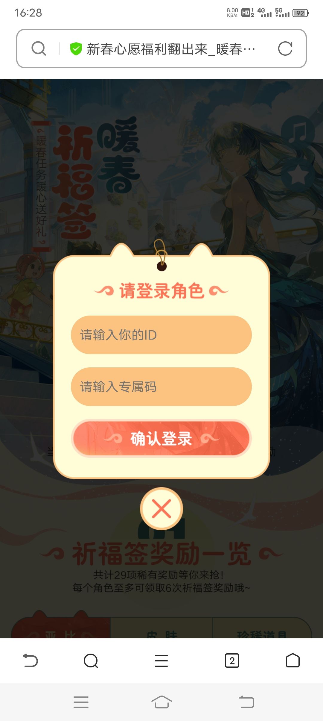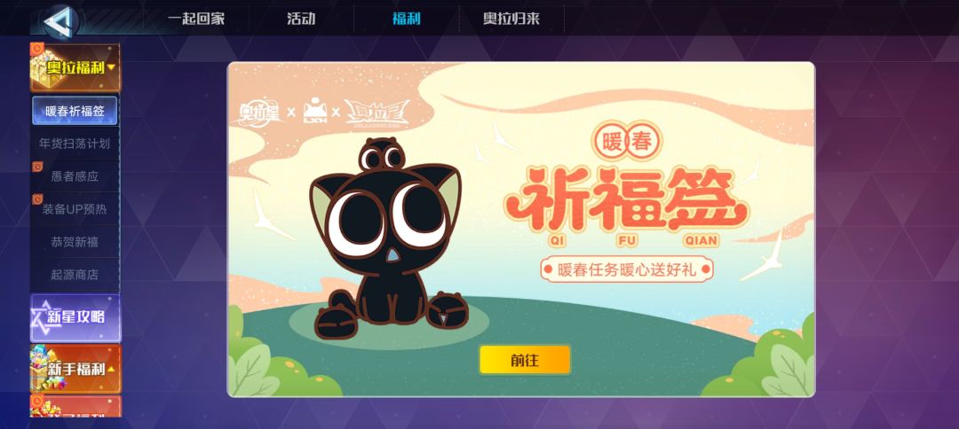 ⑴位置:初始界面右上角〖活动中心〗-福利-暖春祈福签