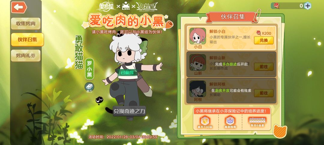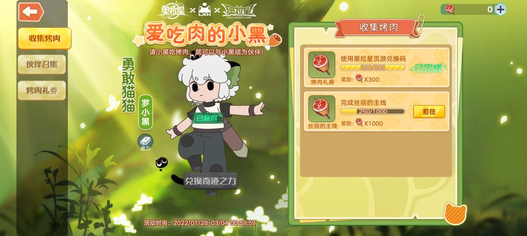 ①第一种:完成丝丽智能导航的主线任务,最多可以获得1000烤肉(但目前任务还没开放完全,要等接下来的几周陆续开放)