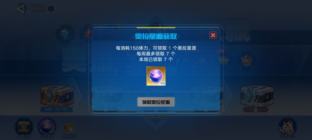 ③宝藏除了每天自动增加,还可以用奥拉星源兑换(每消耗150体力,可以获得一个奥拉星源,每周最多领取7个奥拉星源)