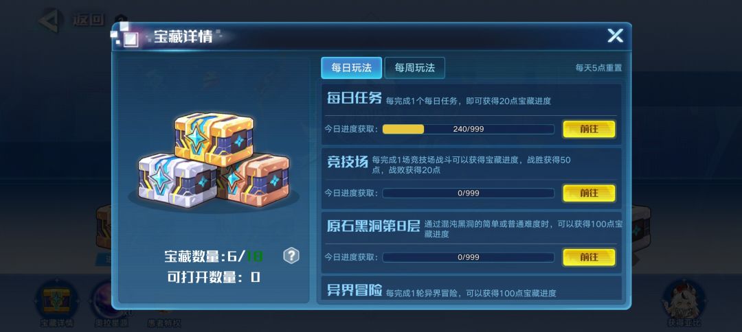 ②累充可以提升每日获得宝藏的数量以及储存空藏的上限(具体情况可以查看累充特权)