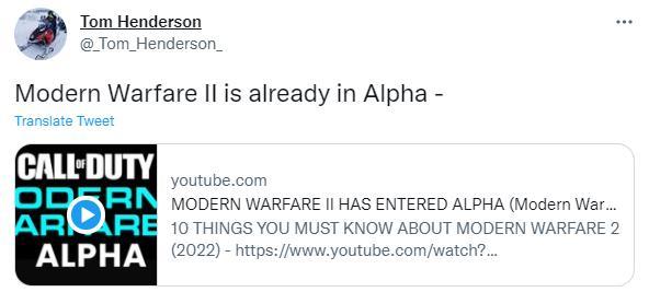 游戏处于A测意味着游戏虽没到发售阶段但大体上已经可玩,据Tom透露消息,《现代战争2》能如此快地进入A测阶段的原因是该作是自《使命召唤:现代战争》后第一款拥有三年完整开发周期的使命召唤系列作品,与前两个版本(《黑色行动冷战》、《先锋》)相比,该作受到新冠大流行影响最小。