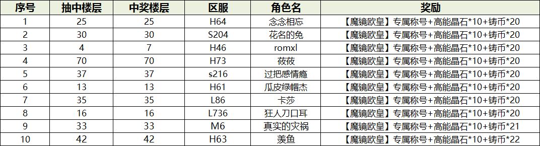 恭喜以下大大们获得“2022欧皇奖”:【魔镜欧皇】专属称号+高能晶石*10+铸币*20