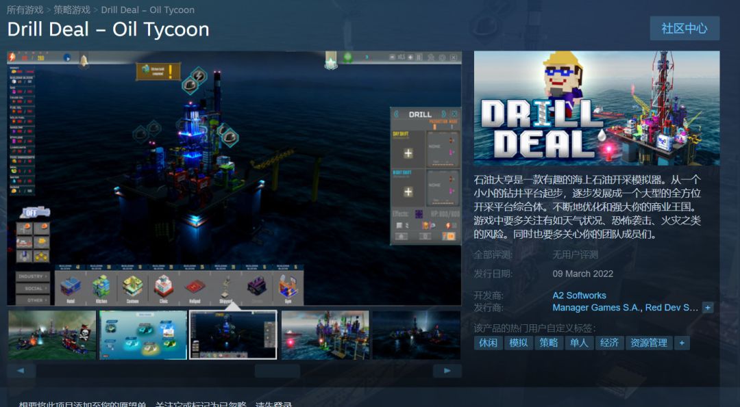 海上石油开采模拟器《石油大亨(Drill Deal – Oil Tycoon)》现已上架Steam,将于今年3月9日发售,自带简体中文。