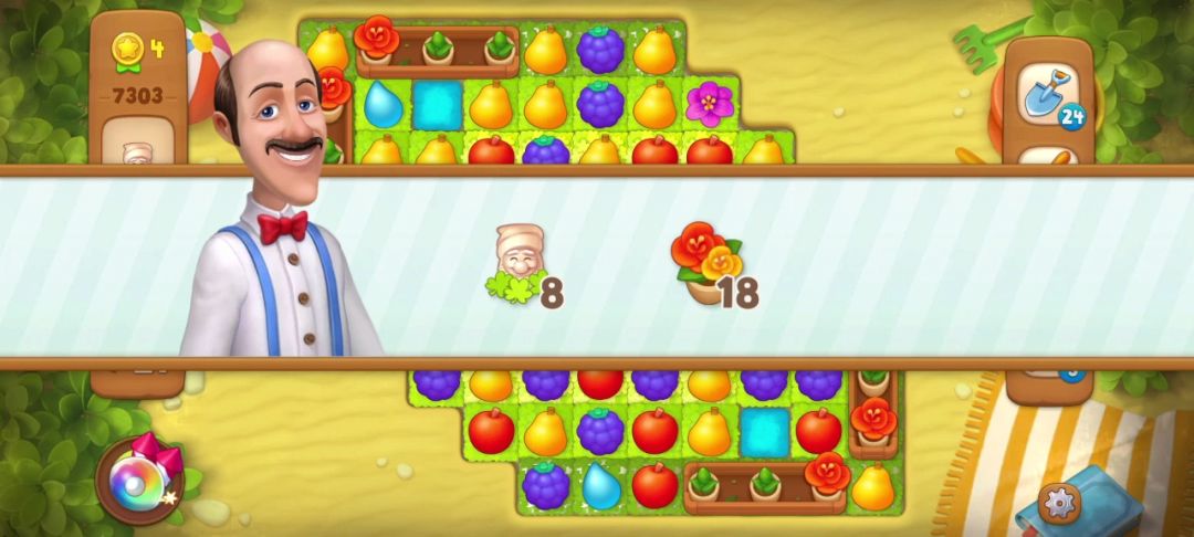 花盆:在花盆周围匹配和花朵同颜色的元素或者使用道具,来消除它们。
