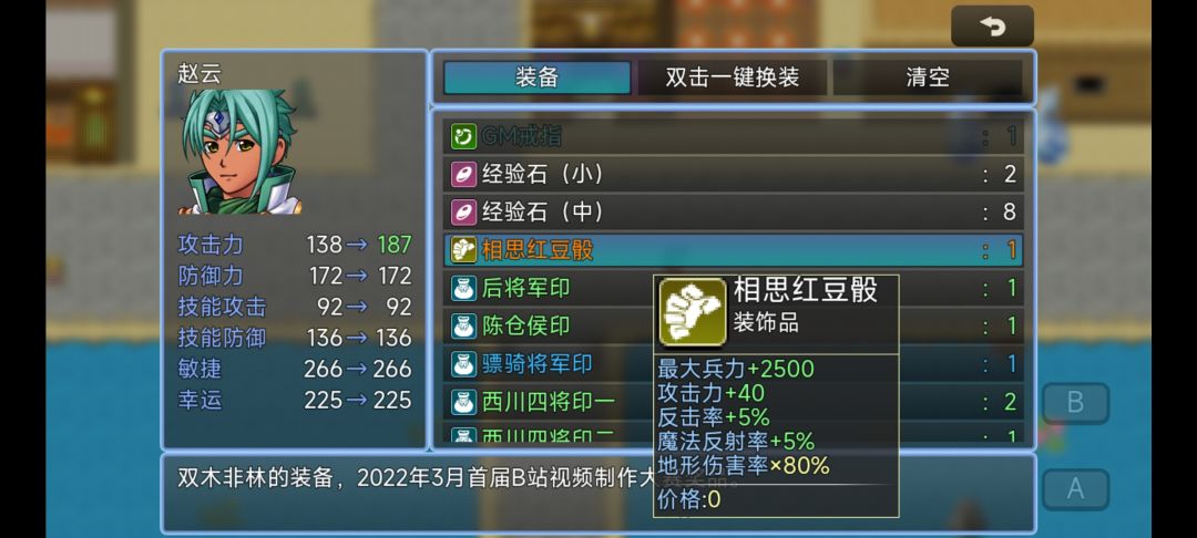GM手环:(100%战斗获得经验,上阵带上生效)开局和刘母对话完直接刘备一个人来到右下角直接获得(如果没拿到可以到淮南用一个蟠桃重新激活条件获取,和那个小兵多对话几次)