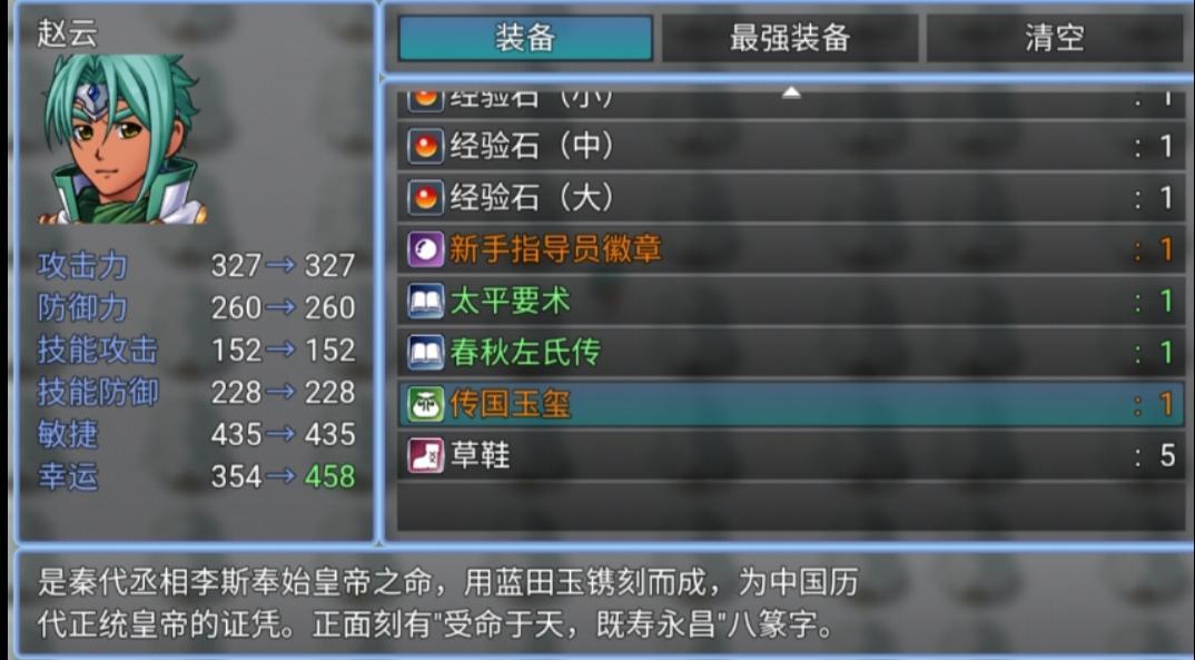 传国玉玺:(加104幸运,最好带上陈兰和爆符)追击袁术万分之一概率可获得
