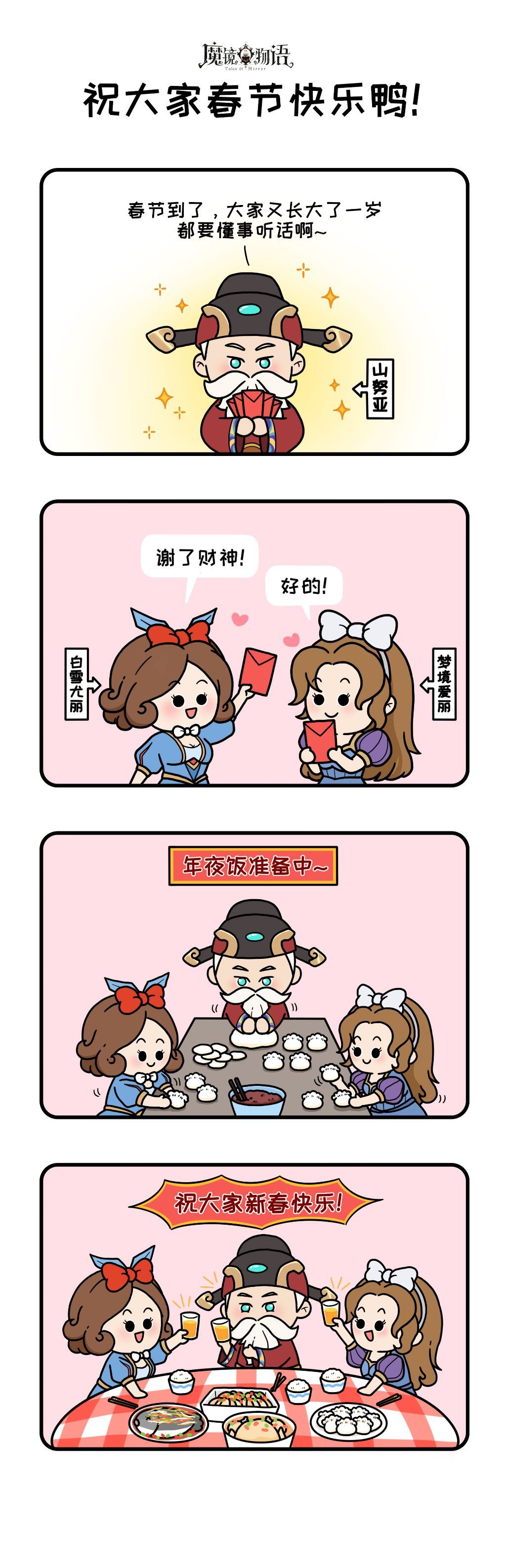 接下来的7天雪雪子会每日为大家带来由微博的@大绵羊BOBO 为魔镜物语绘制的春节趣味小剧场,敬请期待!