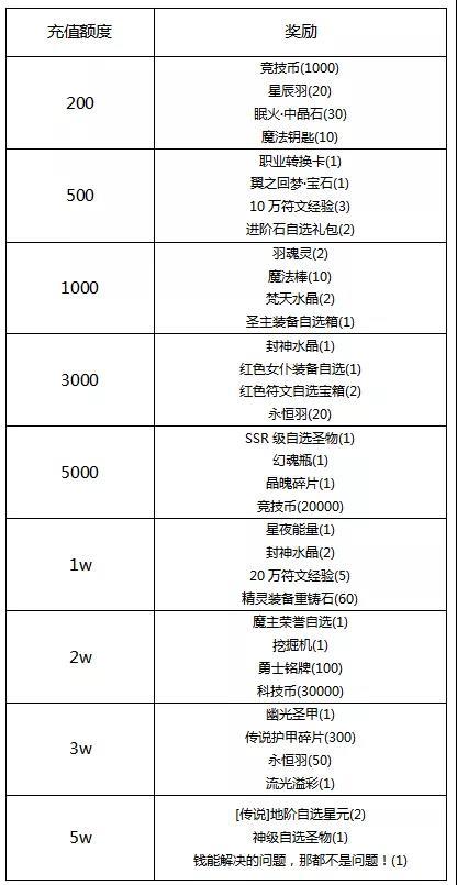 (以上档位不论礼包或直充都满足,但仅限于该档位,充值128+68+30,即可同时享受A&B&C连充活动)