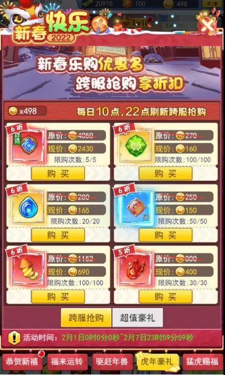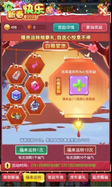 春节虎来运转活动预览(奖励仅供预览参考)