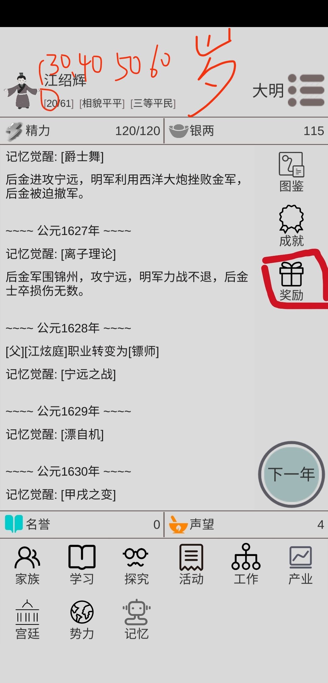 如图,20岁、30岁、40岁、50岁、60岁时会出现领取按钮,过了当年就消失了