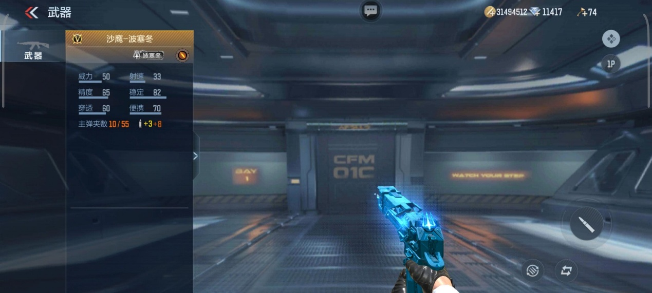 蕴含着海王波塞冬神力的沙漠之鹰,因神力的影响,失去了原来的面貌,全新的面貌由波涛汹涌的海浪覆盖,覆盖率高达百分之百,连打出的枪焰都是蓝色的。弹夹换弹直接滑落而出,并由贴心小触手送上弹夹,不在需要自己去掏弹夹。装备后增加所有背包手枪子弹数,准心恢复速度、子弹伤害和射速都在神力加持下有所提升。