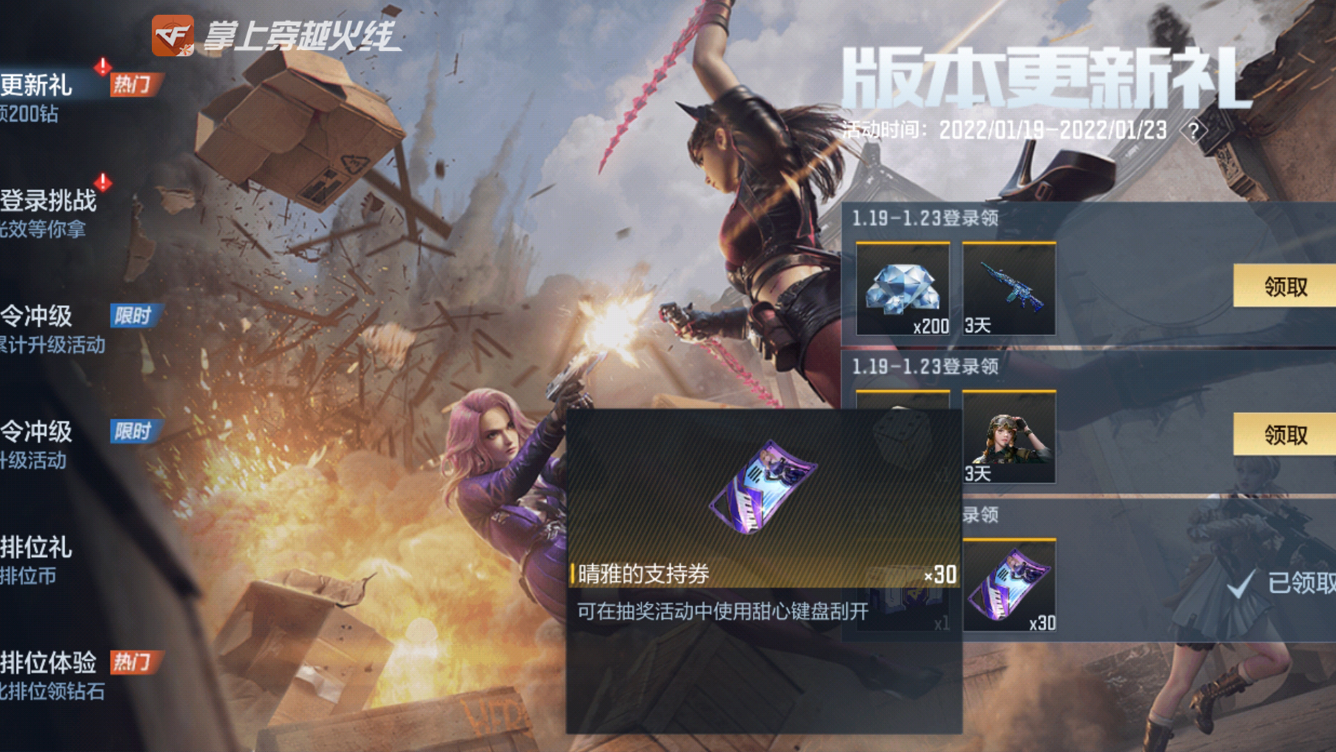 另外,这个活动和之前的女团活动一样,除了抽奖币以外,还需要花费一定数量的支持券,支持券可以通过钻石购买以及电竞剧情模式获得,另外,1月19号至1月23号登录游戏,可以直接领取30个支持券,想要入手的玩家千万不要错过。