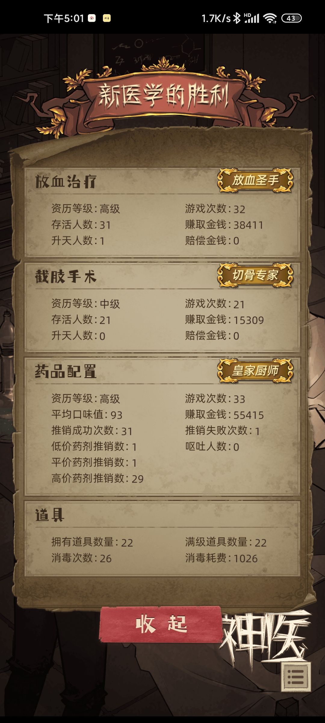 大概三个小时的游戏流程,刷广告直接一路开挂走了个剧情。除了尝试怎么取悦观众弄死了一个人,其他基本完美。