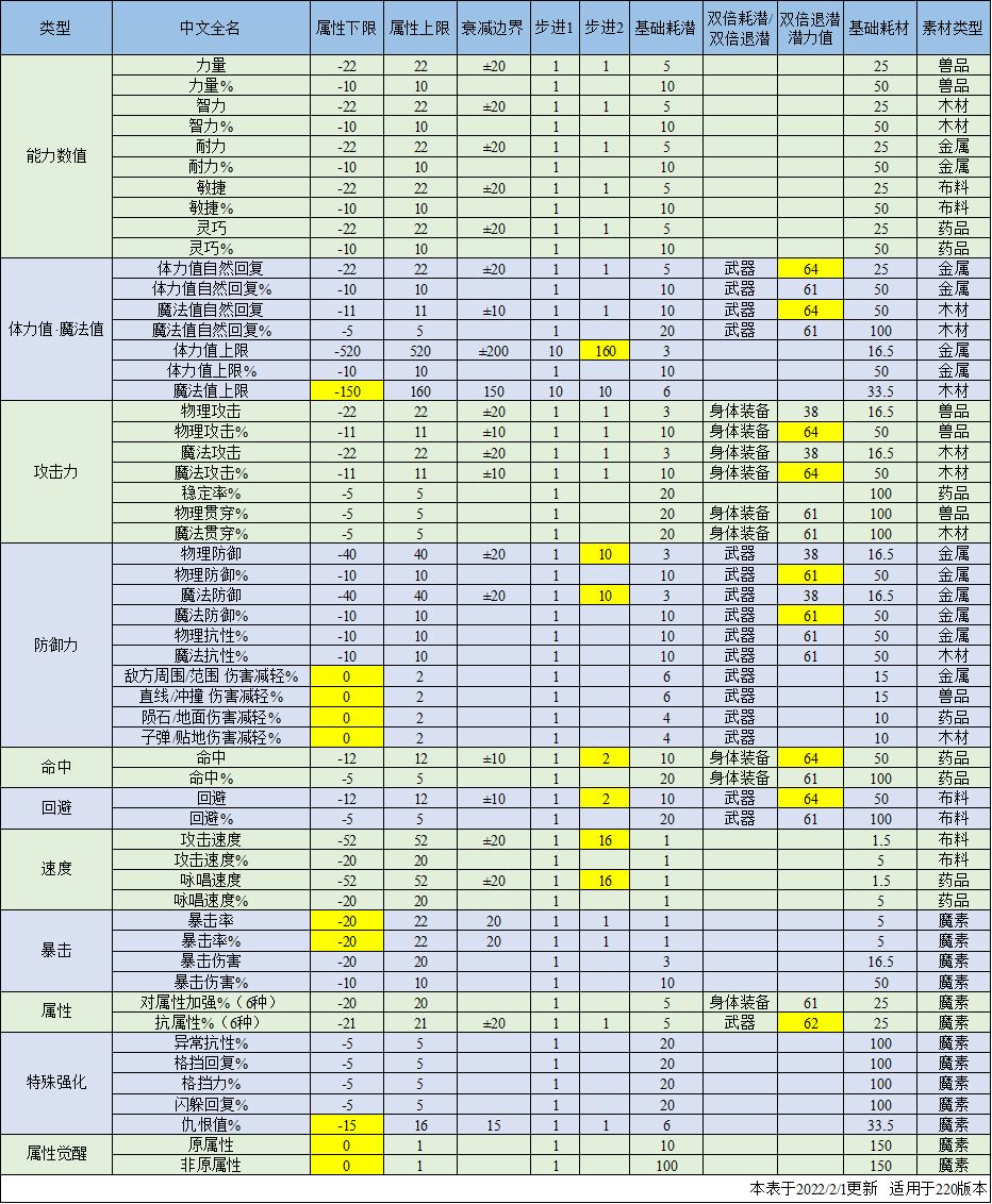 为此我下午整理了220版本附魔的数据做成了表格。