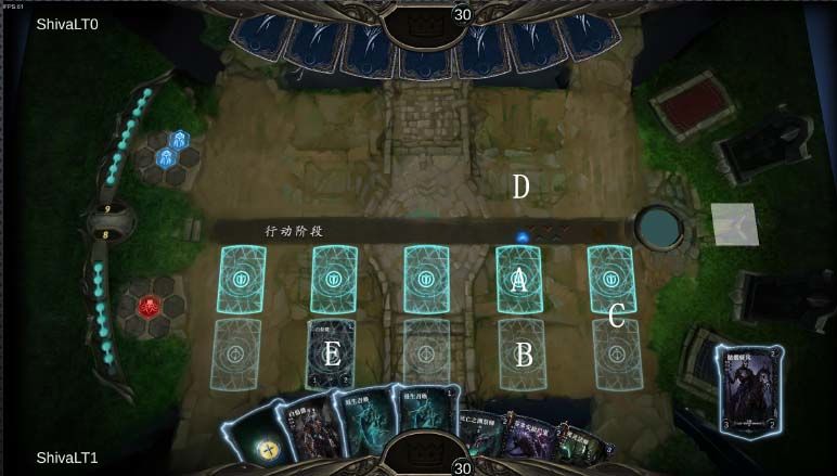 在昨天的对局中我认为,如何放置祭品和吃祭品来发起进攻还是比较有讲究的,这边打算举一个昨天对局情况表现一下。我以图为例,在目前预组粉碎怪有限的情况下,对方处理辅路的辅助B位置的阿斯莫德一般会选择在D区域放高身材白板,在这个时候我们在A区放一个祭品的作用是大于放366恶魔的,对方会选择主动交换掉366换血,却不会选择主动攻击祭品浪费攻击力(除非恶魔在单个大回合仅剩这个祭品),我方C区域斯伯纳克如果需要进攻对方D区白板,我觉得吃A区的祭品会优于吃E区的祭品,并且在这个情况下对方中路的近战怪仅能选择进攻我方中路前排而不能选择到辅路后排。在这个对局中,我如果我吃了E区的祭品发起进攻,对方中路是可以选择进攻辅路祭品让我没有祭品而不能发动进攻的。