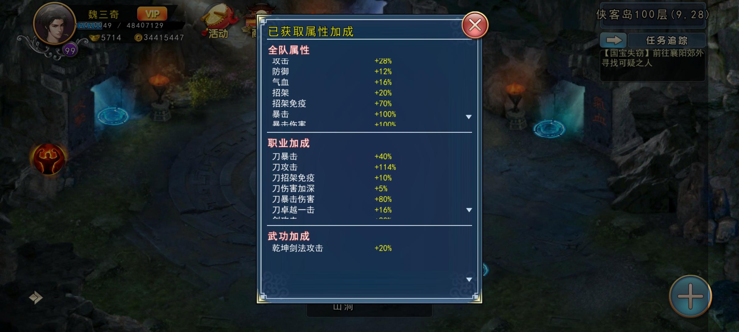 全靠属性好,首次过侠客岛100层。纪念一下