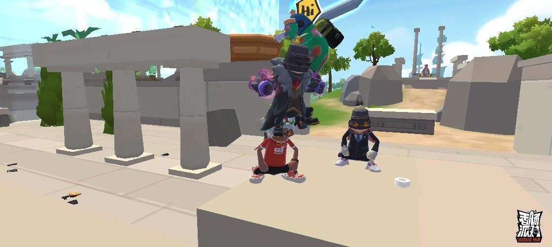 一共有7个人进来了,就只有三个人跳到了彩虹神庙的房顶上,其他人都跳偏了……
