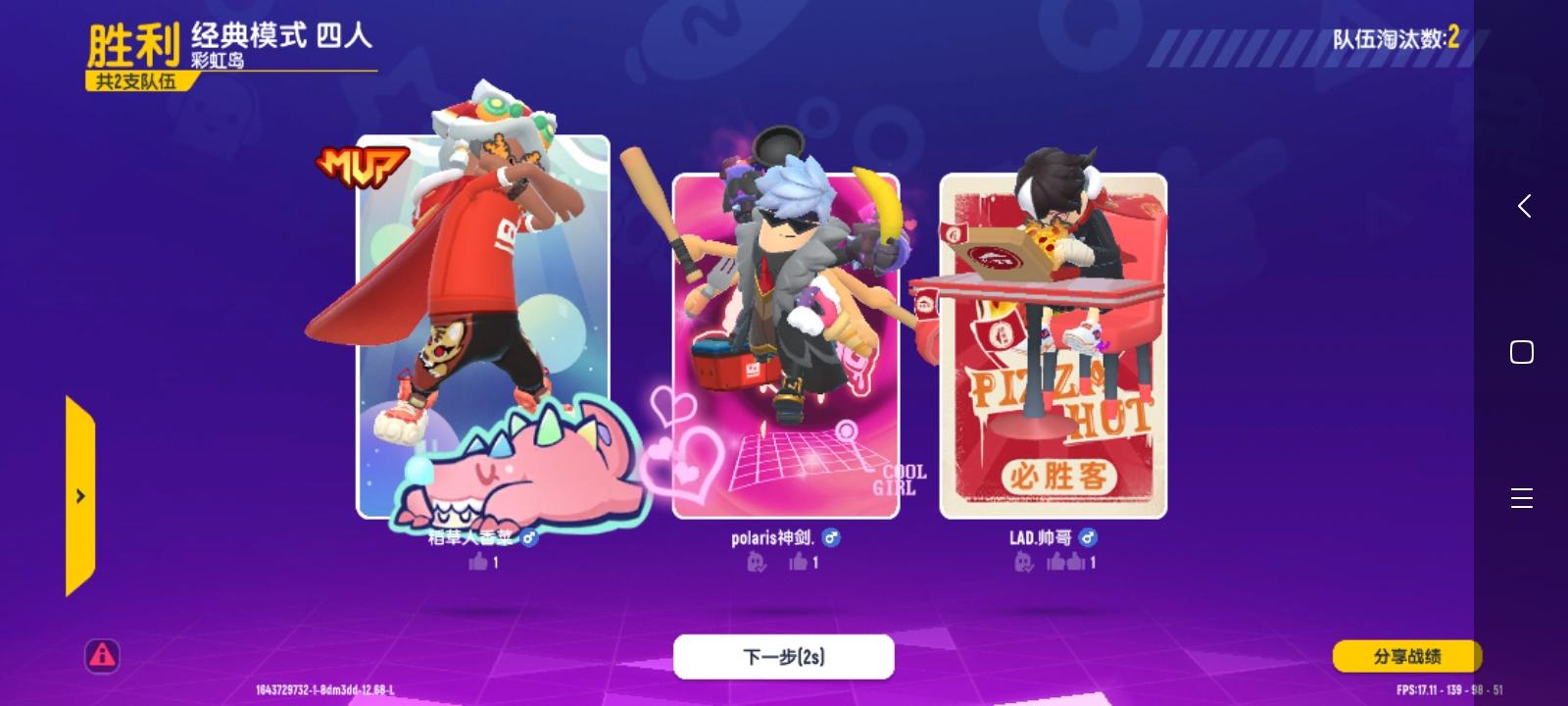 之后毒圈来了,我们就赶紧走进圈内,结果一个人变了鲨鱼,把我俩我和另外一个队友给压死了,我们的3号队友还正在挂机……🌚💦最后那名开鲨鱼的和开机甲的取得了最终的胜利!