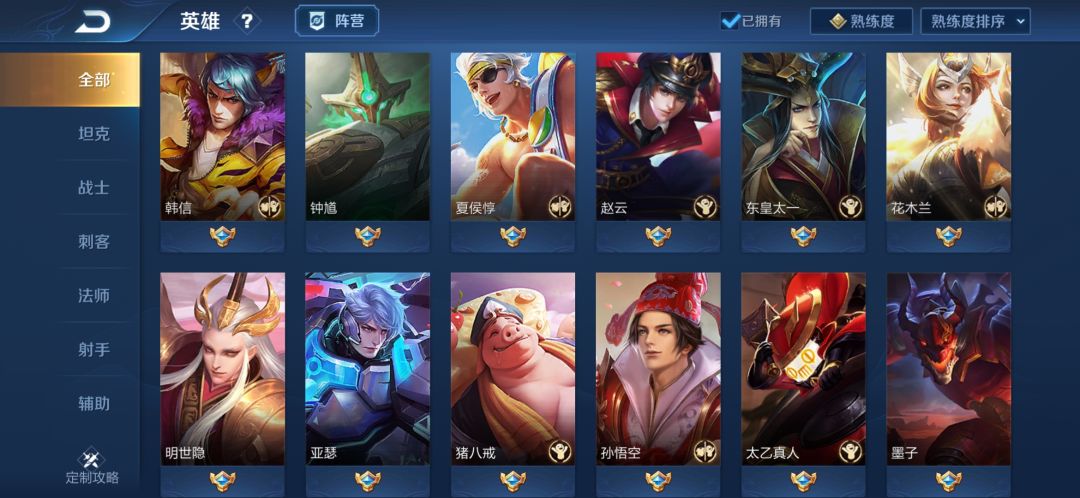 成吉思汗/黄忠/李元芳/马可波罗/虞姬/艾琳(42%) 3无双7红月10鹰眼6狩猎4夺萃