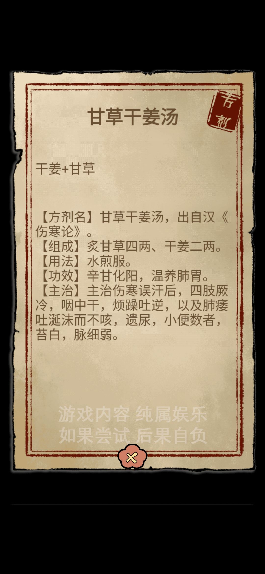 甘草干姜汤:不足一千铜板,被砍了,不推荐上货出售。
