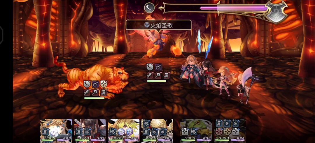火精灵伤害有点高,猫刀带全属性耐性的戒指,然后水剑降智, 米拉降智(实际上我没用过她降智,15%太少了,但是有总比没有好,反正第二回合被眩晕追击放不出去。白嫖的降智不香吗)。这样有三个降智buff,可以稳一点。条是够的,水剑的追击比大姐as的要特殊一点,珠子不会自己掉。所以水剑2轮是有3次斩攻击的。