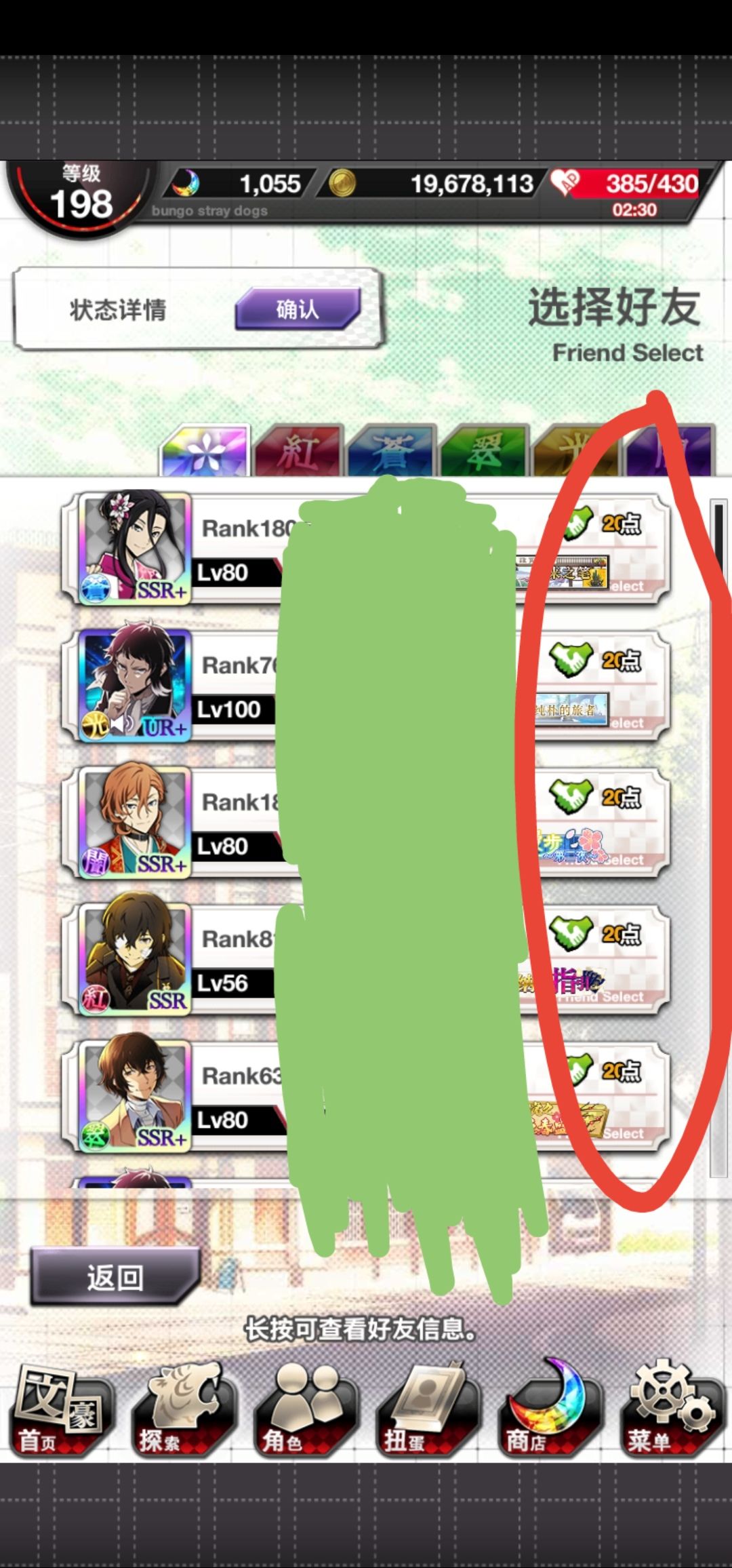 多加点好友,每天每个好友助战给20点(仅1次),游客助战5点(无限次),至少把好友点数清了,速刷也去01-01