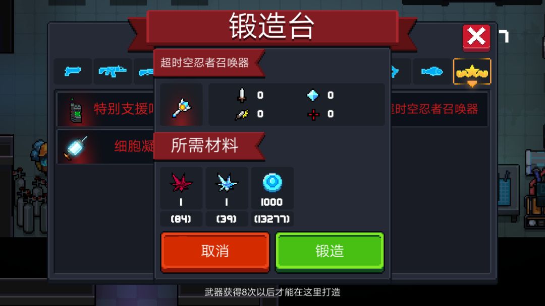 在工程师和刺客处各花费10000蓝币获得“传承族徽”和“超时空便捷联系装置”,在设计台花费2000蓝币合成“超时空忍者召唤器”,带入地牢变身超时空忍者。