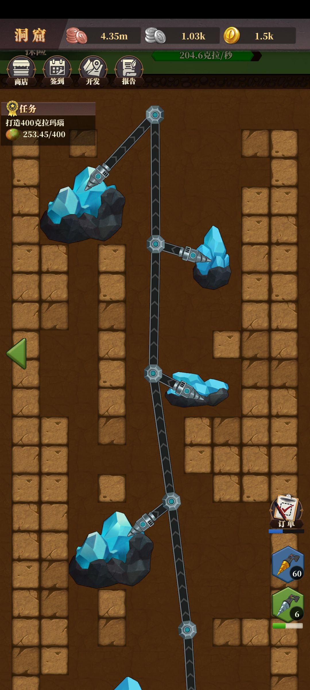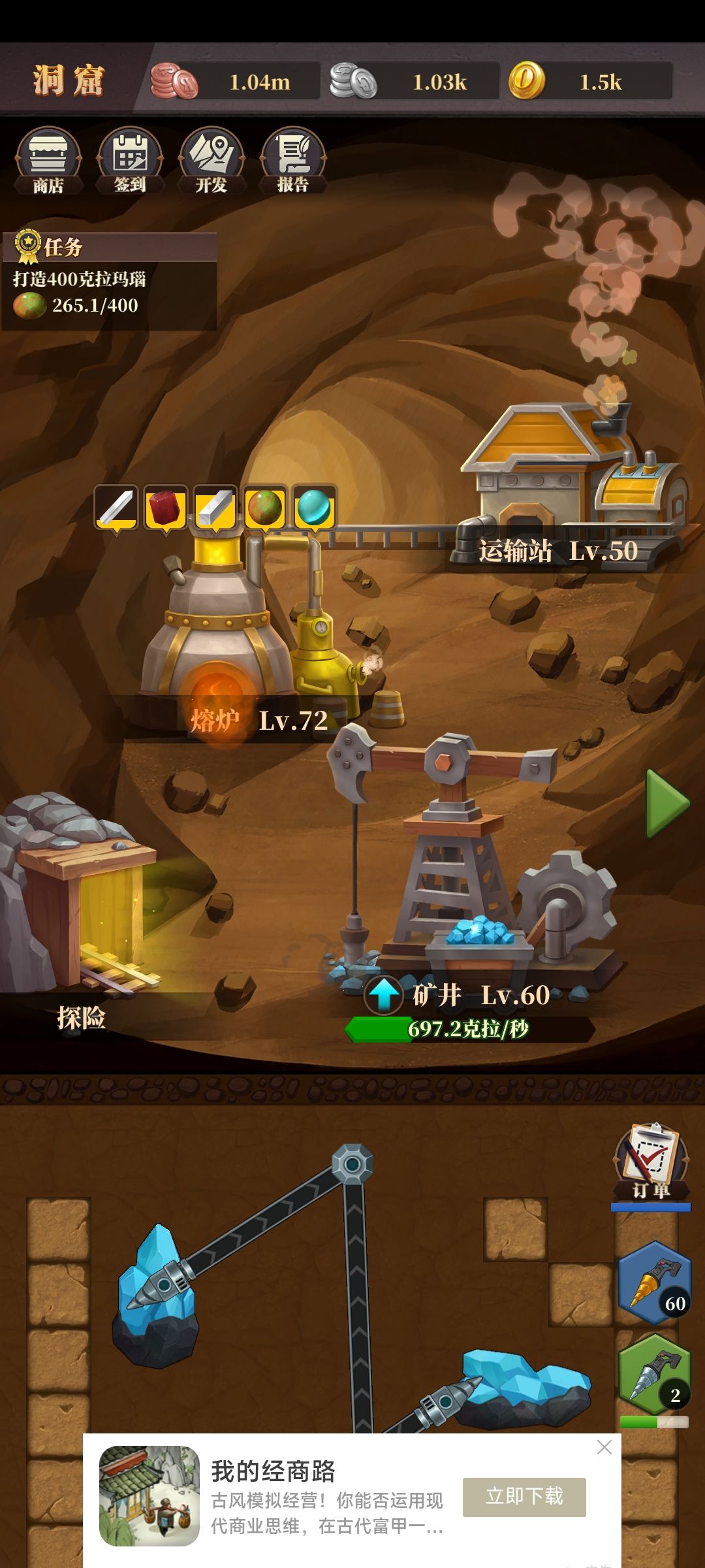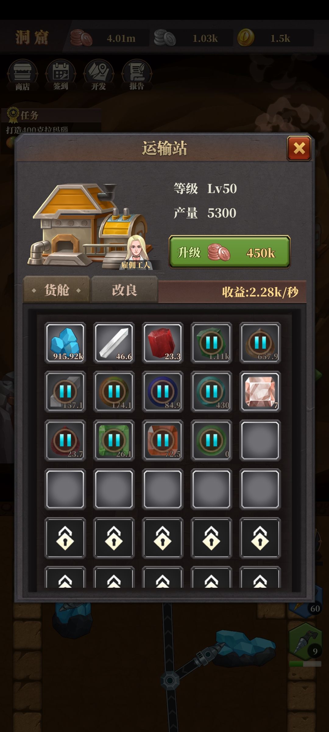 在左上角有个开发功能,尽快做出来解锁新区域,越快做出来收益飚的越快。二区域只推荐蔷薇石英,其他矿根据实际产量来,如果有多余产能可以拿来卖钱。仓库的车是有运输体积的,卖太靠后的矿会因为矿石体积过大导致单位时间收入较少。二区域的运输站不推荐太早提升,因为一区域的运输站有任务,优先提升。下图里的最下面一排一定要点出来。