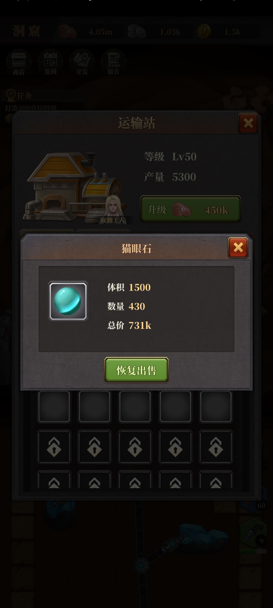 一阶其他石头性价比都很低,在开放二区域之前不建议做,只需要做出够开发和订单的就行,而且不要出售!!!不卖的矿石记得去运输站点暂停出售图上有个暂停键的就是暂停出售的矿石。