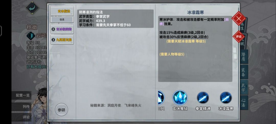 玄阴指需2突配合寒冰能将集气从2.5降至1.25,不推荐萌新使用。