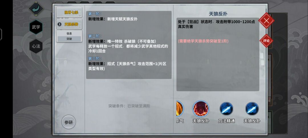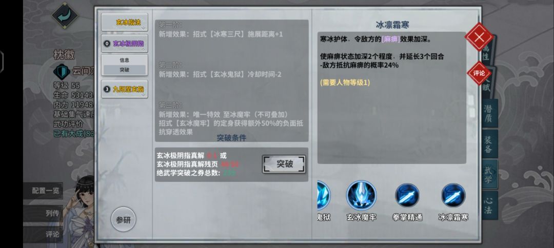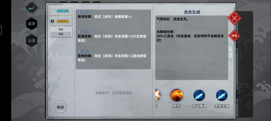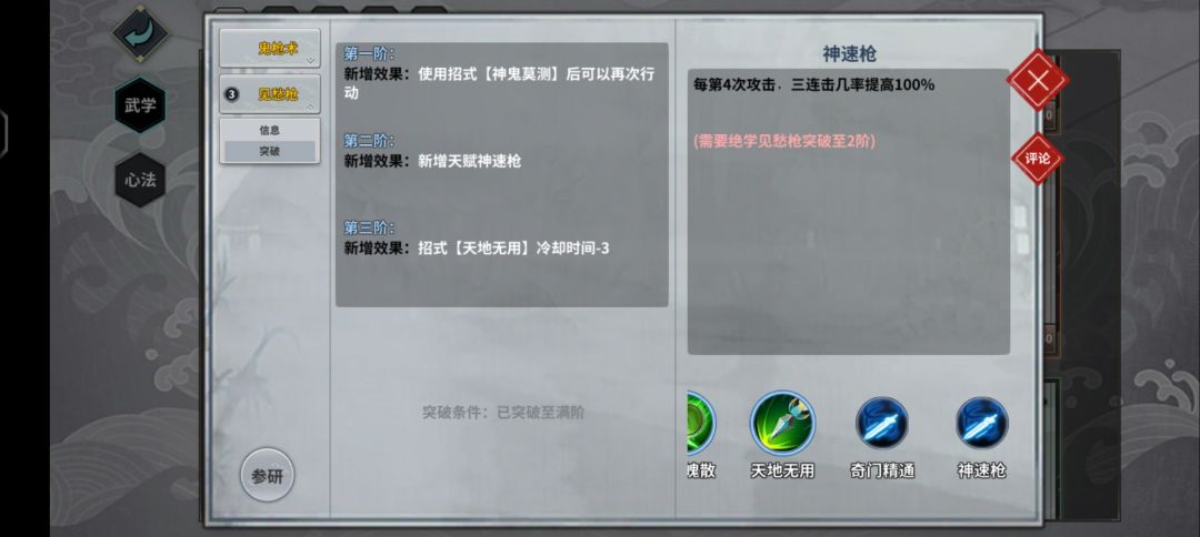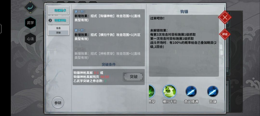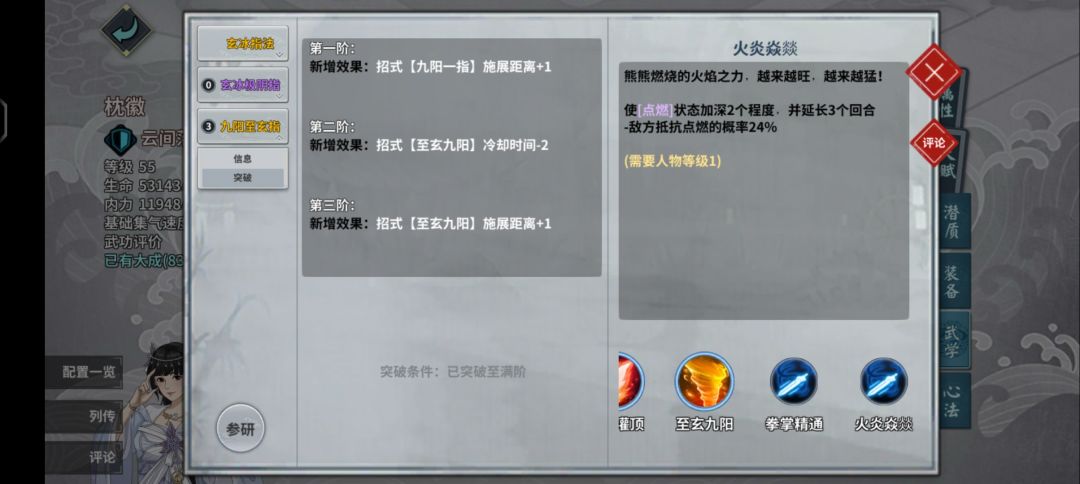 今天再盘点一下当前版本下解锁且要求有一定突破程度的武学,以免萌新不慎误操作…