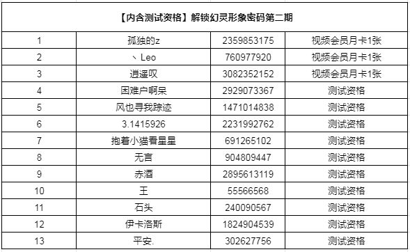 (已开奖)【内含测试资格】解锁幻灵形象密码第二期