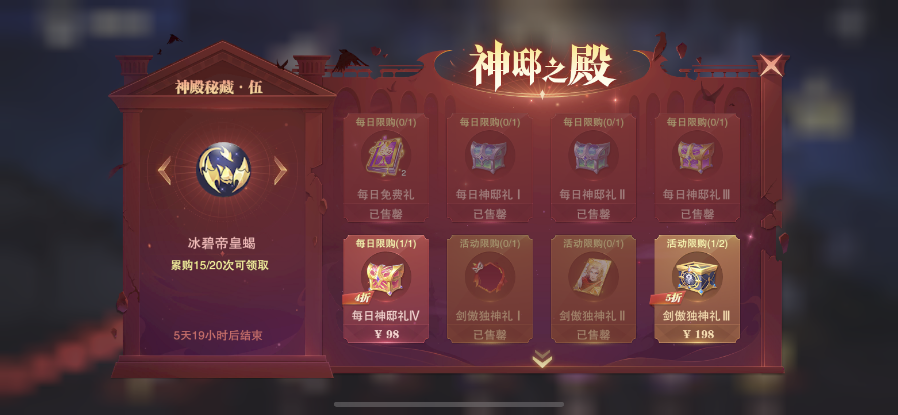 神祇之殿活动次数猜测,1档2,2档+4是6,3档10,4档14,5档开始+6是20,6档26,7档32,估计8档开始+8,40,9档48,10档56。买满4*8+9=41,怎么搞都得不到最后奖励。