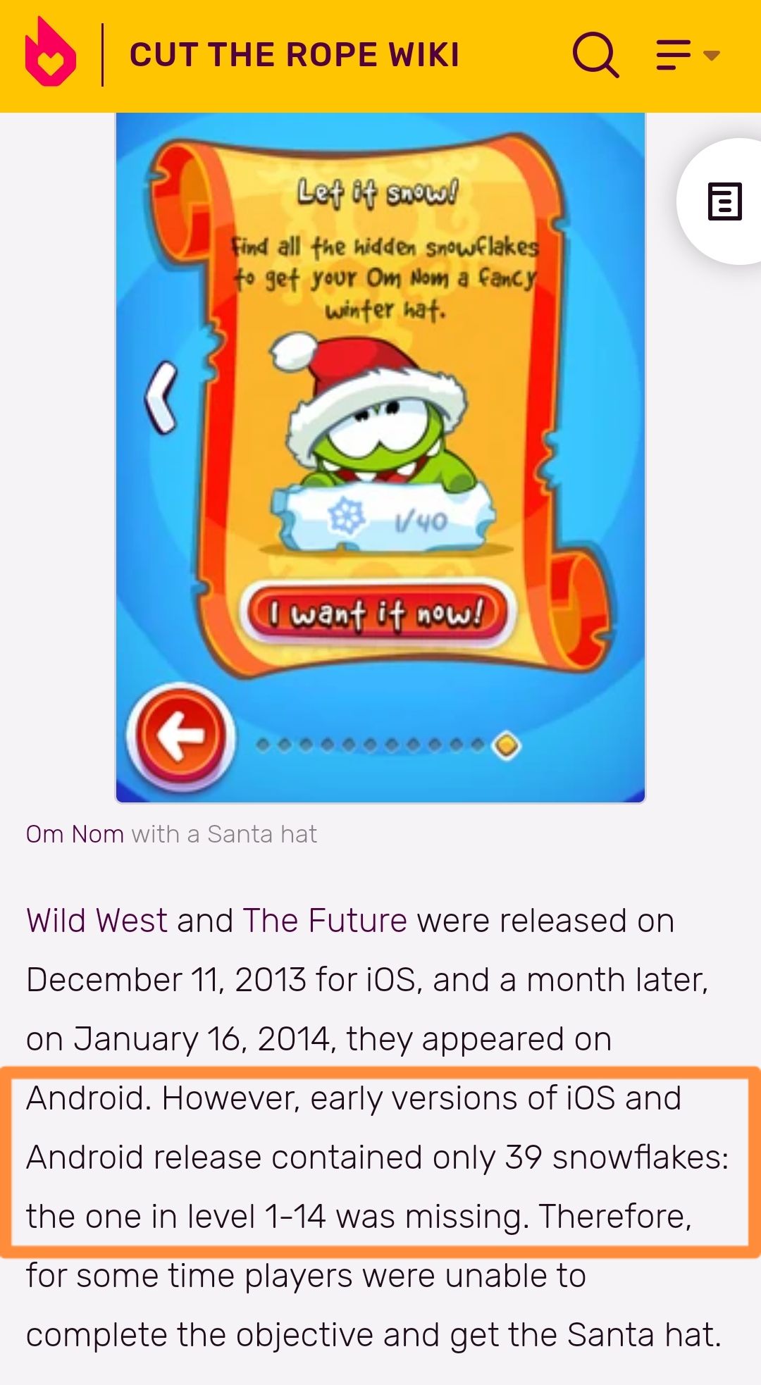 通关了也少了一个雪花,对着攻略找了好几遍也找不到漏掉了哪个。查了一下wiki,说是国外的初期版本掉了1-14的一个雪花,看到论坛也有其他人少一个找不到,估计就是这个原因了。官方早点更新吧!