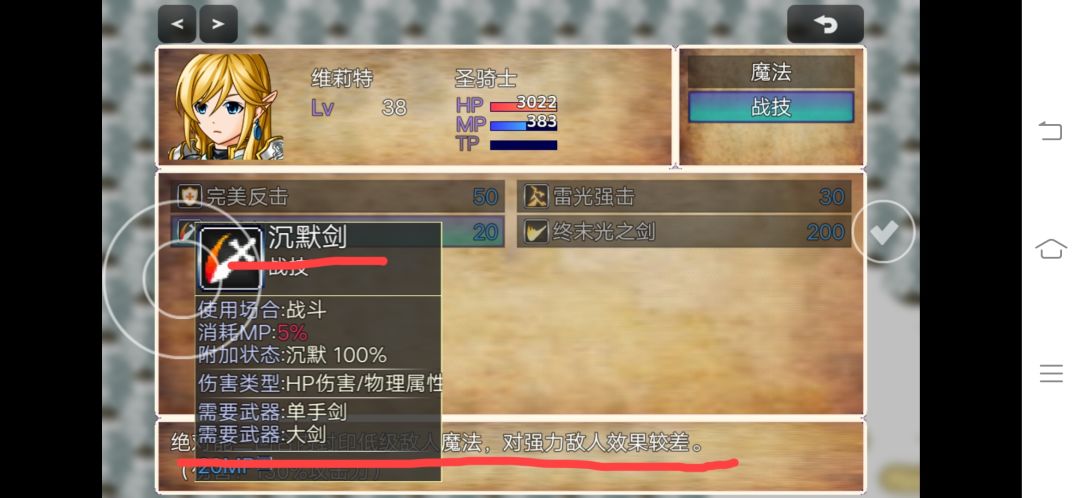 这个技能描述的有点模糊封印低级魔法。什么魔法算低级魔法?这里应该加一条消耗多少Mp之下的魔法无法使用,还有这技能其实可以删除了这技能有点鸡肋,只能封印小怪技能,小怪我一两个技能秒我封印了做什么?BOOs基本封印了也没有用,BOOs好像没有低级魔法吧。