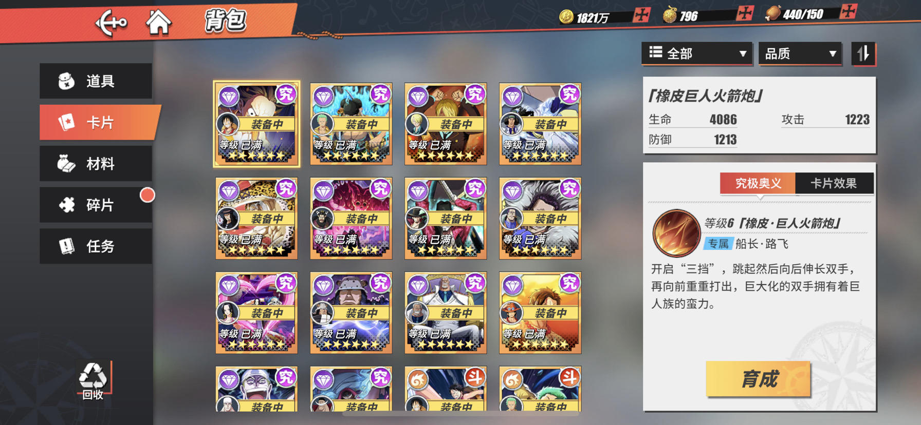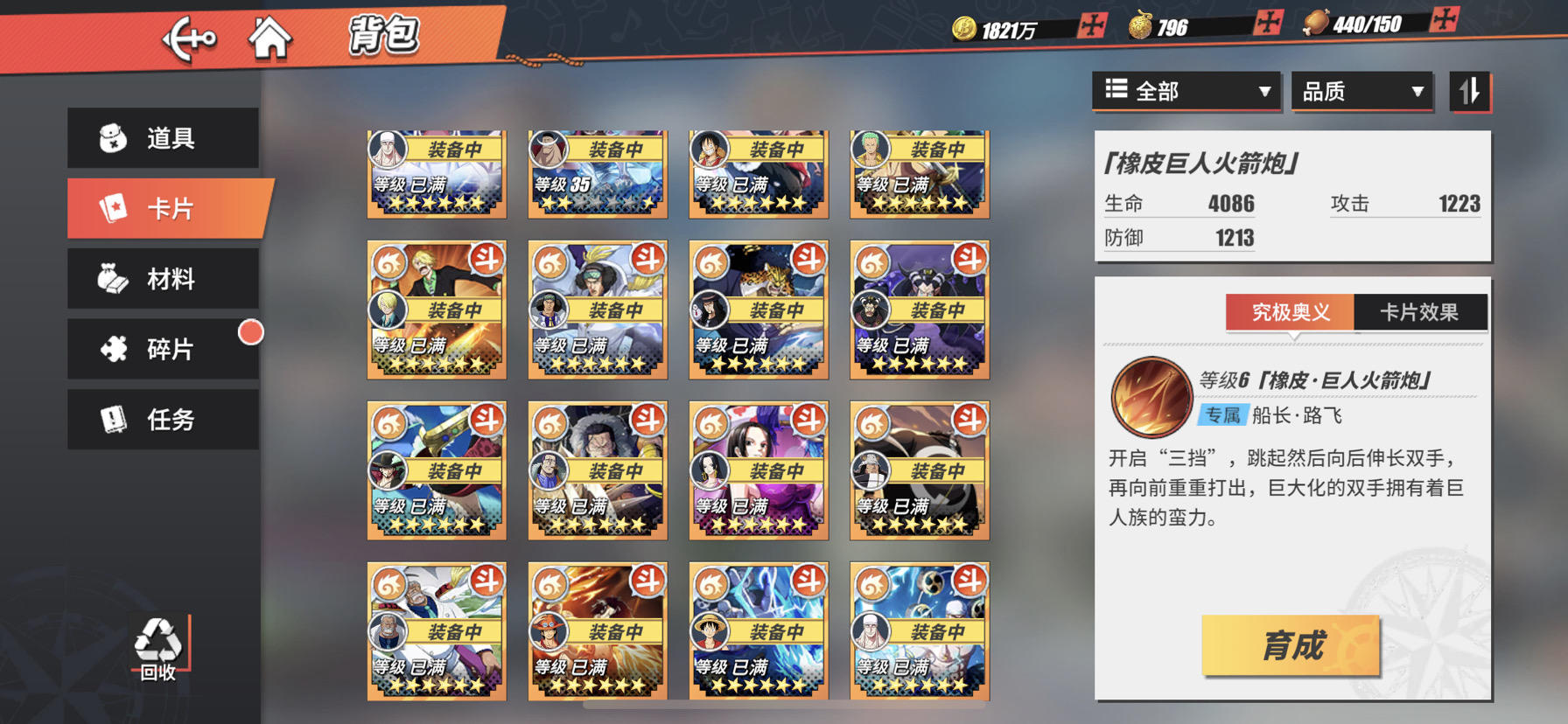 502W战 六星鹰眼女帝山治 五星雷神艾斯路奇 全图鉴 全卡片 ss激动奥义全满金 还剩30个橙核心 328首冲还有