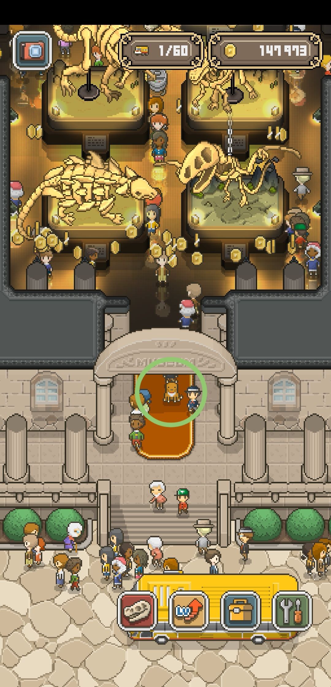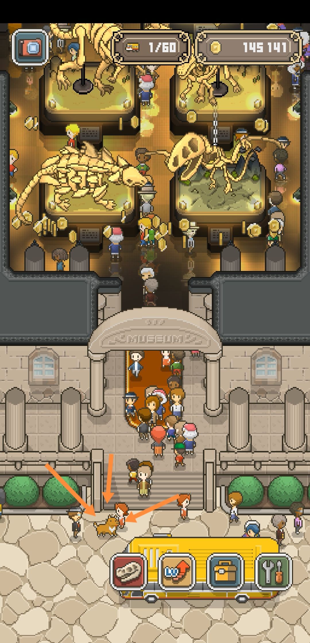 之前查询攻略的时候了解到,不是博物馆外所有的人都是博物馆游客,你可以点击提醒路人进馆参观。刚刚我点路人的时候居然点到了一只狗,狗狗参观过后的打赏更高哦。