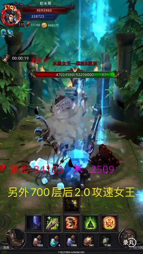 打法有两种,一种用极速复制闪电来打断火雨释放,但是只能用极速,还有一种原理就是利用冰火技能冷却时间相同且分开计算,用闪电和眩晕延长火雨开始释放时间,让冰雨吟唱打断火雨释放,形成全程无火的状态,俗称卡火,卡火成功一段时间后可能又会出火,说明火没有卡好,卡火在左上角冰雨读秒27秒时立刻晕一下,25秒再晕一下,700层以上boss攻速由2.5变为2要难卡一点,失败了就逃跑重来。