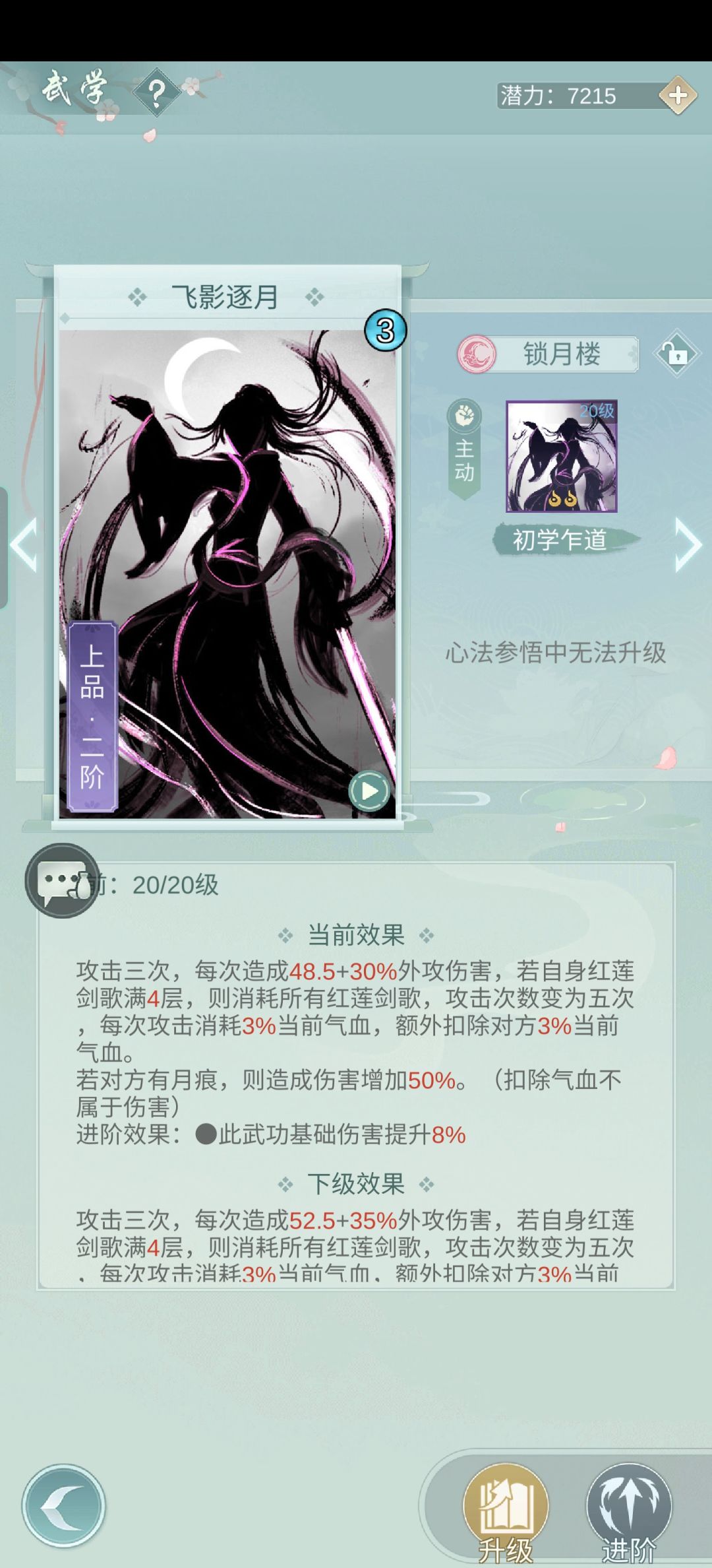 武学这块测试了旧三套,折月步步轻云,折月步步飞影…目前推荐旧三套和飞影步步月牙