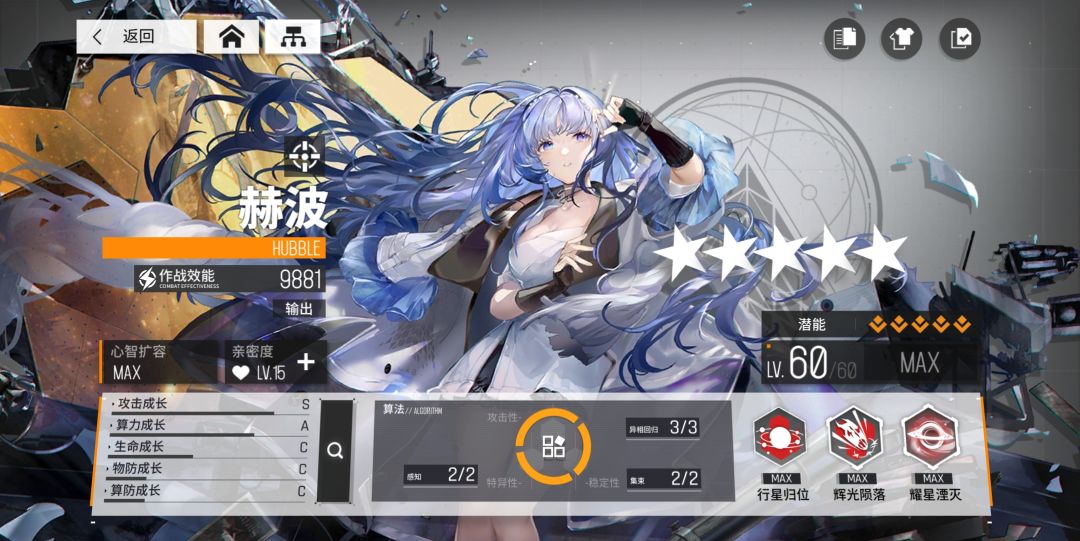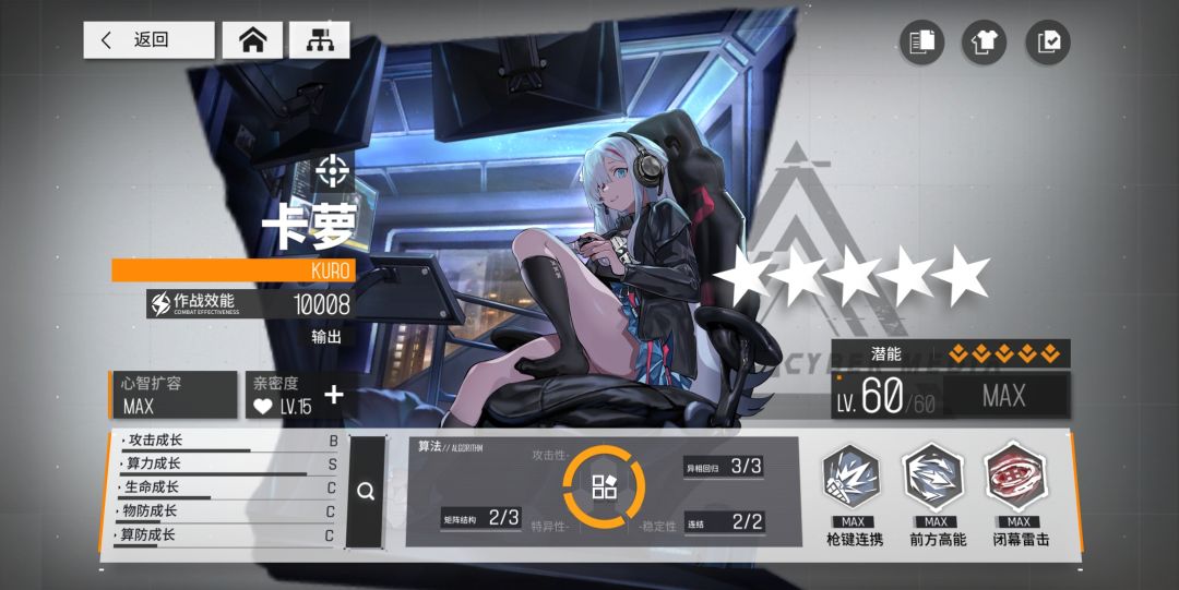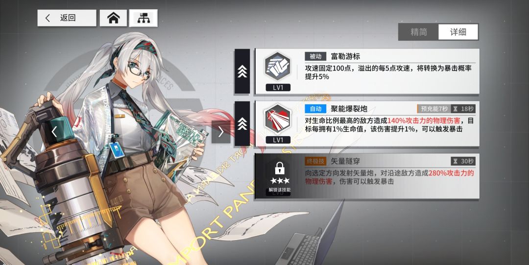 本游戏射手里面带有持续性真伤的射手,本来之前没有大招是有很大的提升希望,但是大招过于拉胯,所以有点低于期望,再加上虽然故障能够换取碎片,但是效果并没有拉姆显著,一星所需要的养成成本过大,而且算射队不缺输出大爹,所以不太推荐,还是后期资源够了之后在练。
