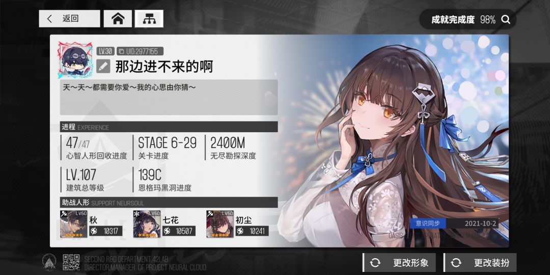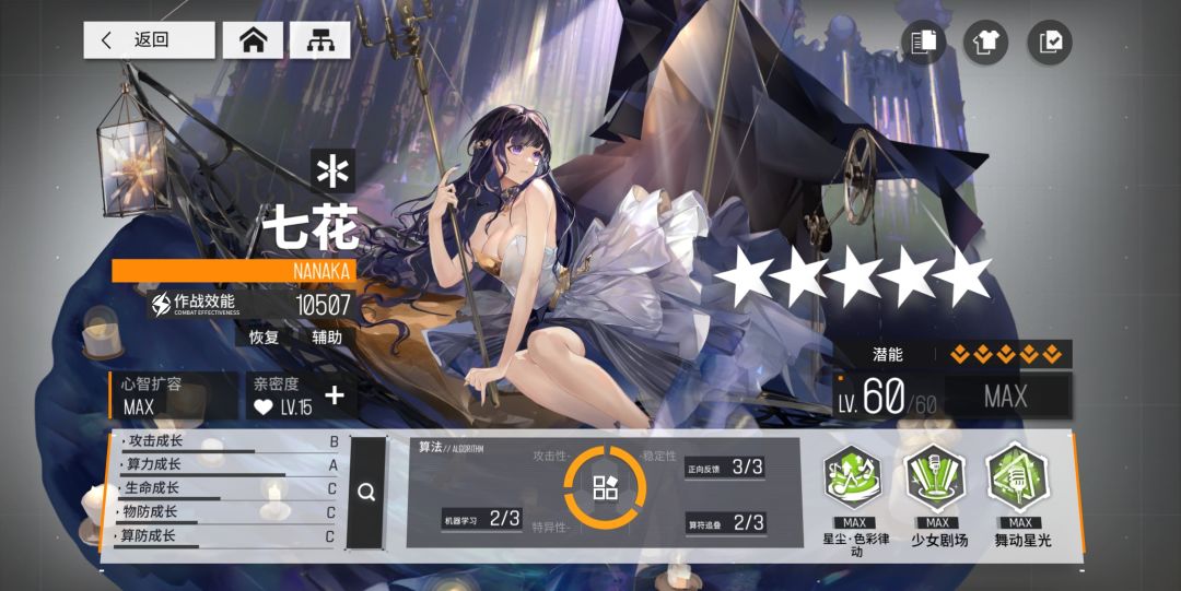 被动能够提高周围两格友方人形20%的攻击和算力,这谁看谁不迷糊啊,只要站位的好,五个人形都能吃到加成,再加上不算稀薄的奶量,秃黑洞奶妈必带的首选,因为黑洞吃不到任何函数和协议的加成,七花的这被动buff无疑是雪中送炭,并且七花的大招能够选定地形,地形里面所在的人形都能够获得免死效果直到大招结束,在面对短时间内高爆发的敌人时,七花就是永远的妈!