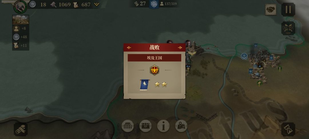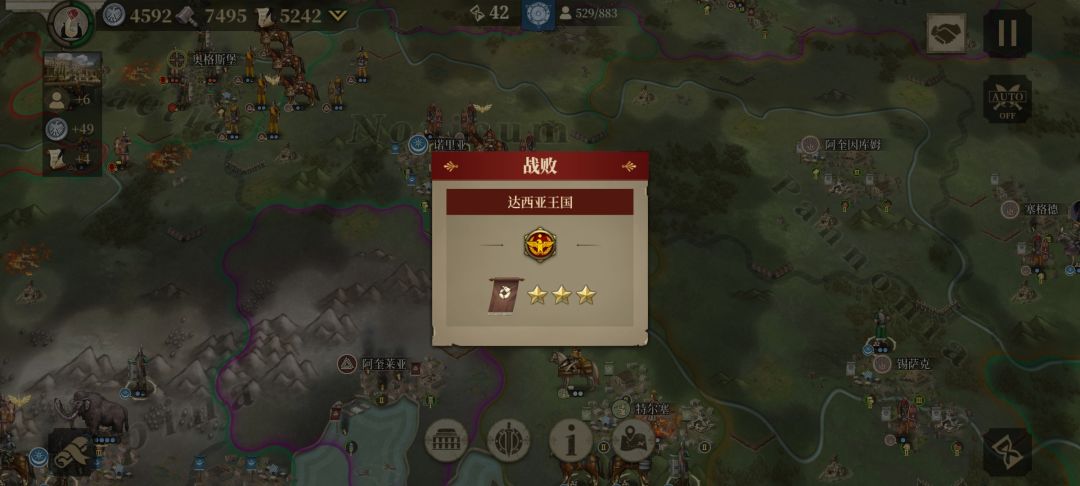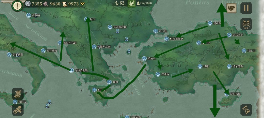 2、我待小亚细亚局势稳定后,乘势宣战塞琉古帝国,塞琉古帝国战败,我获得了小亚细亚半岛的发展空间。